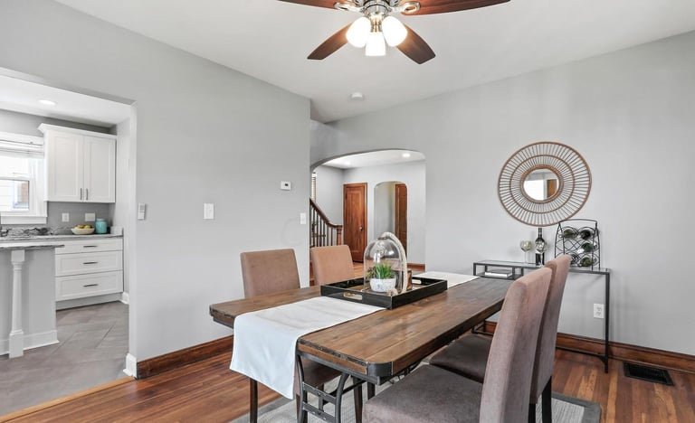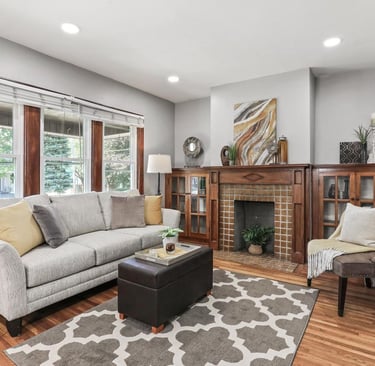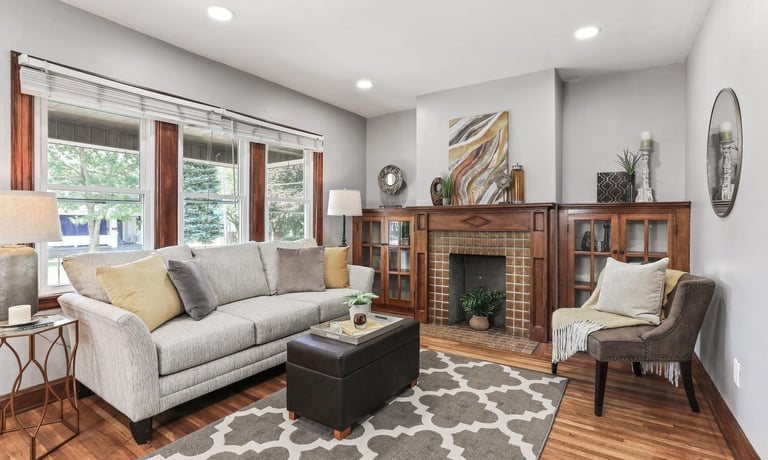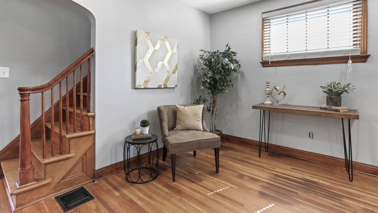 This project was pretty much a full rehab. We swapped all the windows with double hung energy efficient replacements. It was given a new energy efficient furnace and AC system. The electrical panel was upgraded, and we added wafer lights (can lights) to the living room and kitchen. All the original hardwood floors were sanded and finished with 3-4 coats of oil-based poly urethane for a natural look.